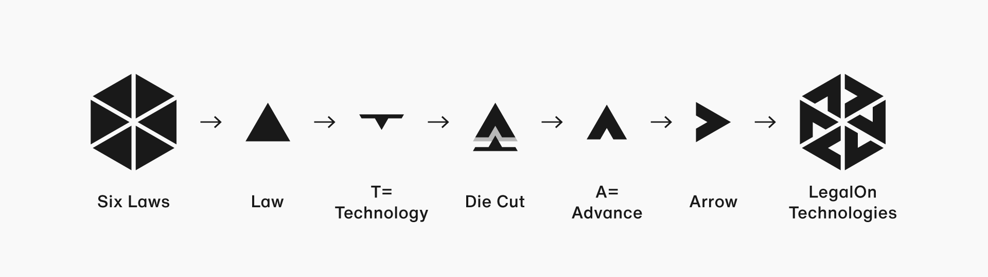 LegalOn Technologiesのロゴマークは、「法」に「テクノロジー」という切り口を加えることで、「前進性(Advance)」を意味する「矢印(Arrow)」を生み出し、それらが絶えず回転し続ける様子を表しています。「法とテクノロジーの力で、安心して前進できる社会を創る。」というパーパスを体現しながら、攻めと守りを担う契約法務のパートナーとして相応しくあるべく、六法とガーディアン機能を象徴する「盾」をイメージした旧ロゴマークの六角形を引き継いだデザインになっています。
