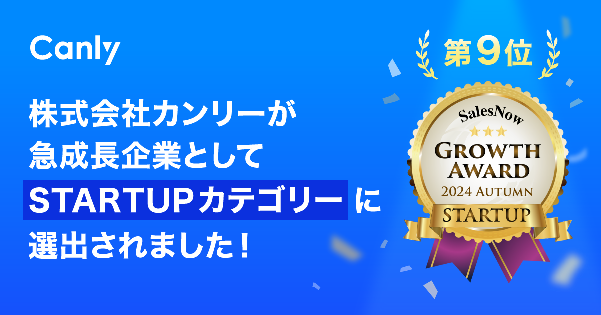 カンリーが急成長企業として「SalesNow Growth Award 2024 Autumn」のSTARTUPカテゴリーに選出!