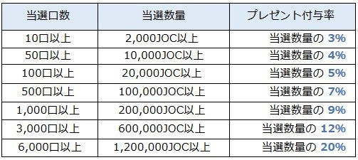 IEOに参加かつご当選されたお客様に、当選数量に応じてJOCをプレゼントします。