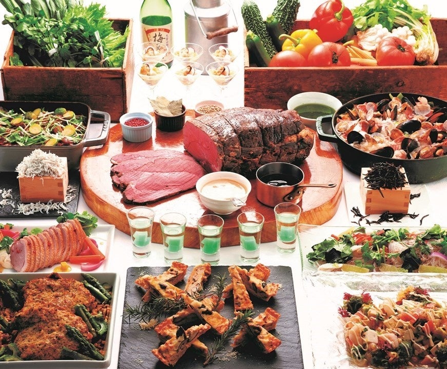 横浜の「かねじょうみそ」を使い、まろやかな味噌オニオンソースで召しあがっていただくローストビーフや、神奈川県銘柄豚やまゆりポークと初夏の野菜のサラダガレットなど、神奈川グルメを心ゆくまでご堪能いただけます。