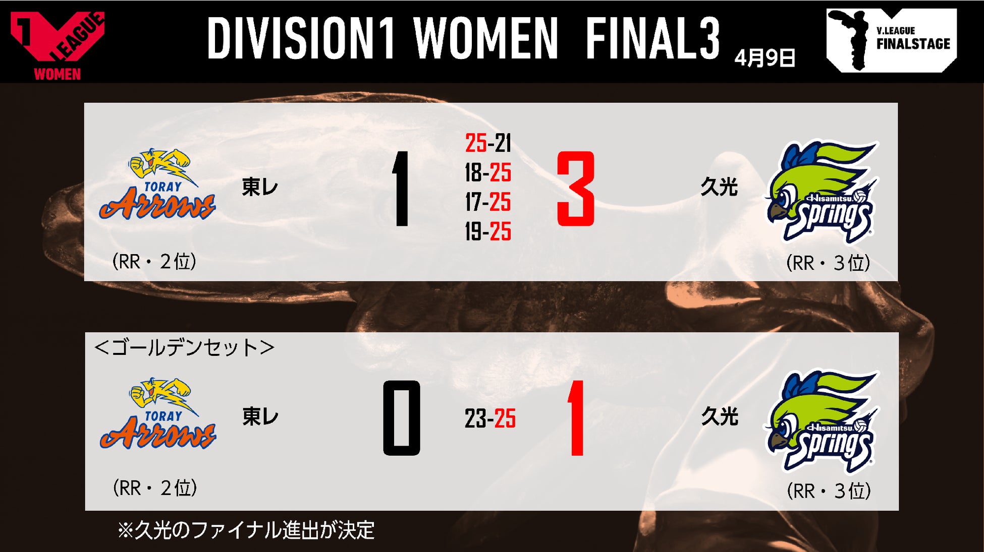 2位通過の東レに勝利し、ファイナルの切符を掴んだ久光 4月9日 対東レ戦