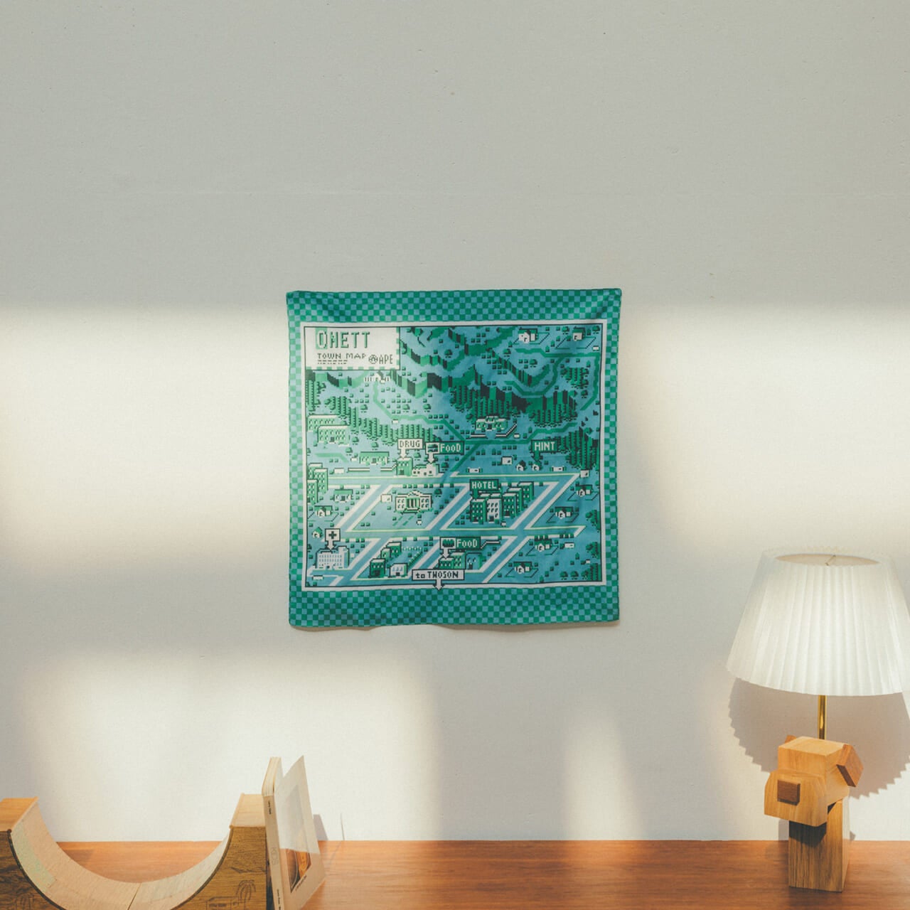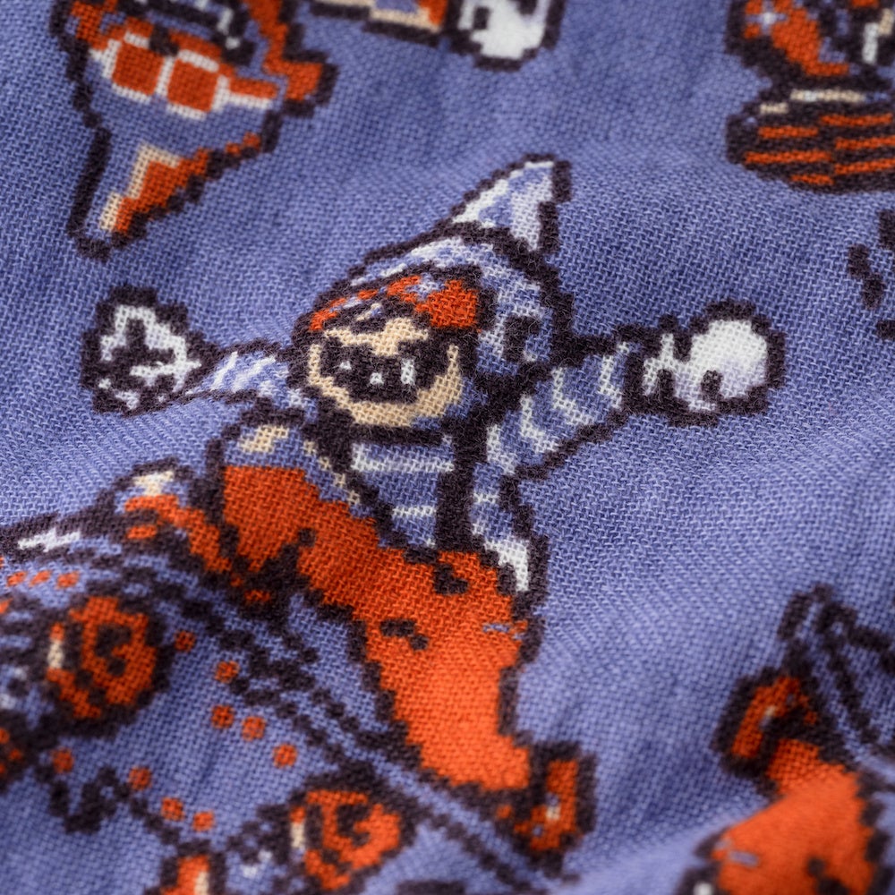 『MOTHER』シリーズのバンダナができました!サイズは52×52cmでいろいろとべんりに使っていただけるほどよい大きさです。デザインは、「オネット」と「シャークだん」の2つ。オレンジとグリーンの2色展開です。「オネット」は、ドット絵のタウンマップです。アメリカの町のおみやげ屋のレジ横にならぶ、スーベニアバンダナのような存在になるといいなあと思ってつくりました。「シャークだん」は、スケボーのなまいきボーダー、フラフープのおちょうしものキッド、ホッピングのはねっかえりキッド、そして、フランクさまとフランキースタイン2号が勢ぞろい!