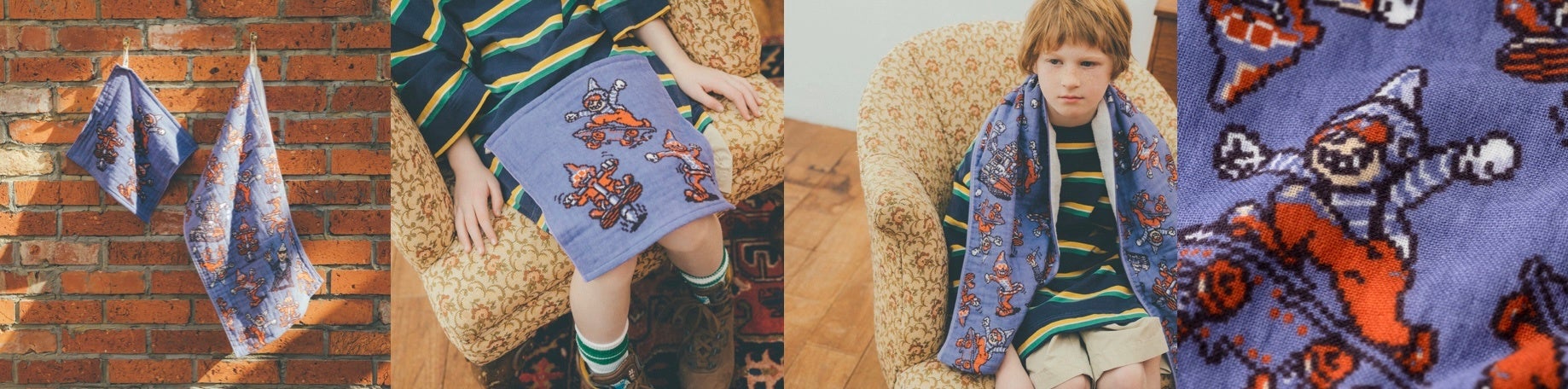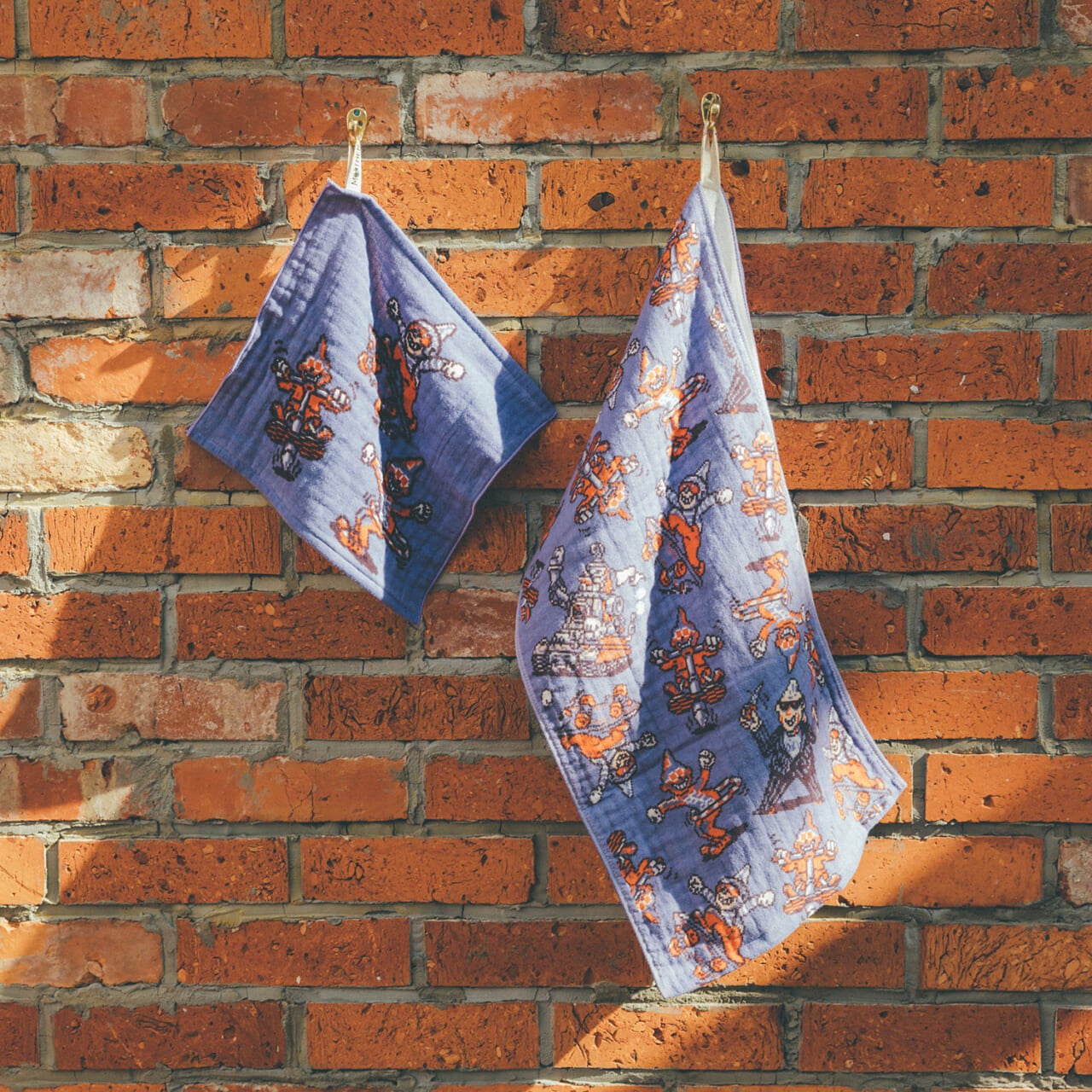 『MOTHER』シリーズのアイテムのなかでもたくさんのかたに愛用いただいている「やさしいタオル」シリーズ。新作は、バンダナとおなじく、「MOTHERのストリート」を象徴するかっこよくてかわいいデザインです。ハンドタオル(29cmの正方形)と、スポーツタオルサイズの「シャワー」(126×35.5cm) をご用意しています。