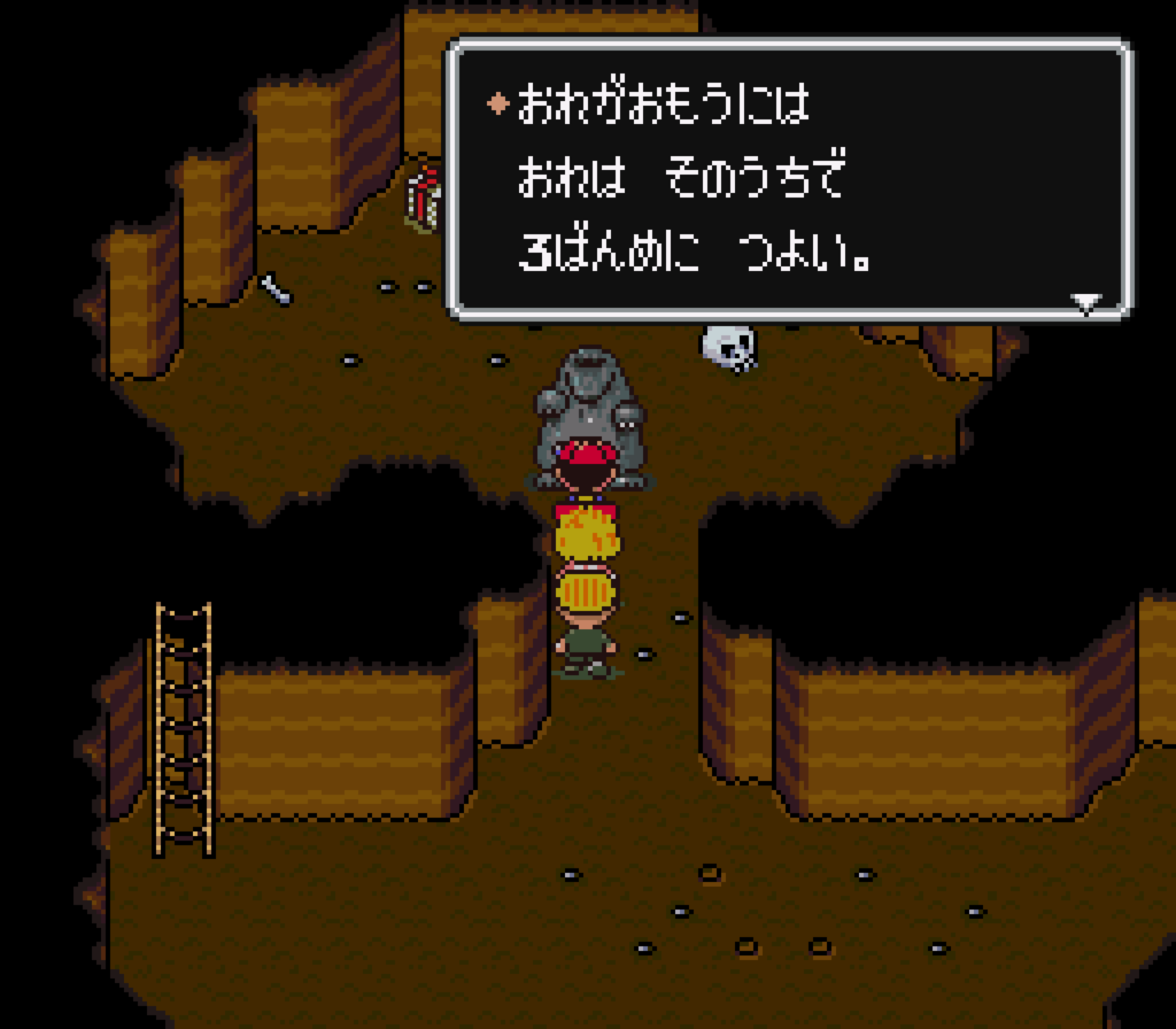 「あなのぬし」は、『MOTHER2 ギーグの逆襲』の中盤、ドコドコ砂漠のダンジョンに登場する敵キャラクターです。いわゆるひとつの「中ボス」的な存在ですが、この「あなのぬし」というもぐら、ぜんぶで5匹いるんです。ダンジョンを進んでいくと、ところどころに「あなのぬし」が待ち受けていて、都合5回ほどバトルになる。勝つと進める。そして、この「あなのぬし」の最大の特長は、全員、5匹とも、「自分こそが3番目に強い」と言い張るんです。普通はボスとか敵キャラって、「自分こそが最強だ!」と言い張るじゃないですか。ところがね、この5匹のもぐらはね、「自分こそが3番目に強い!」と胸を張るんです。「俺こそがナンバー3だ!」というたいへん強烈な自負があるんです。そんな「あなのぬし」を主役にした新商品をつくりました。
