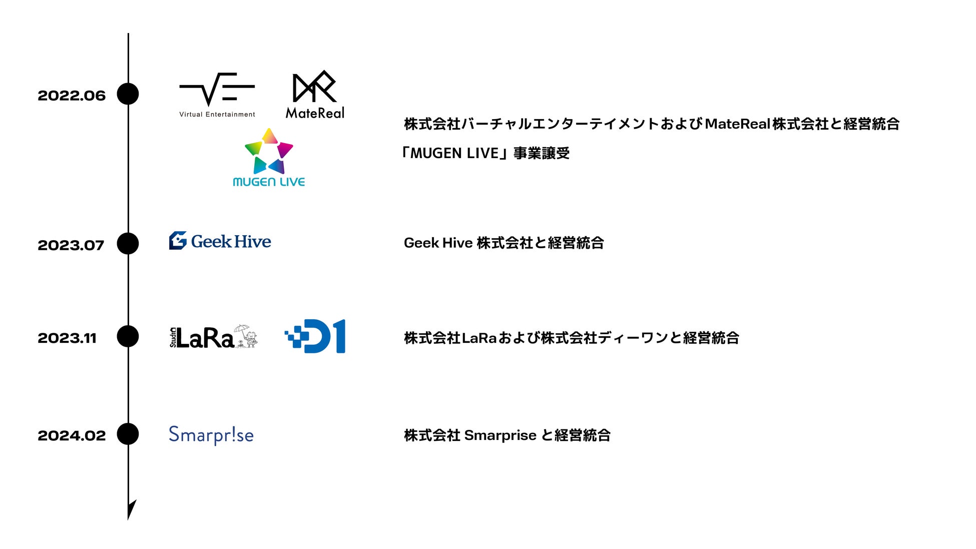 また、直近1年間で計4社と経営統合を行い、IP事業だけでなくPlatform事業やesports事業、XR事業、DX事業、Incubation事業と幅広い領域のアセットを持つことによって、新規事業創出や既存事業のグロースのための土壌を整えてきました。