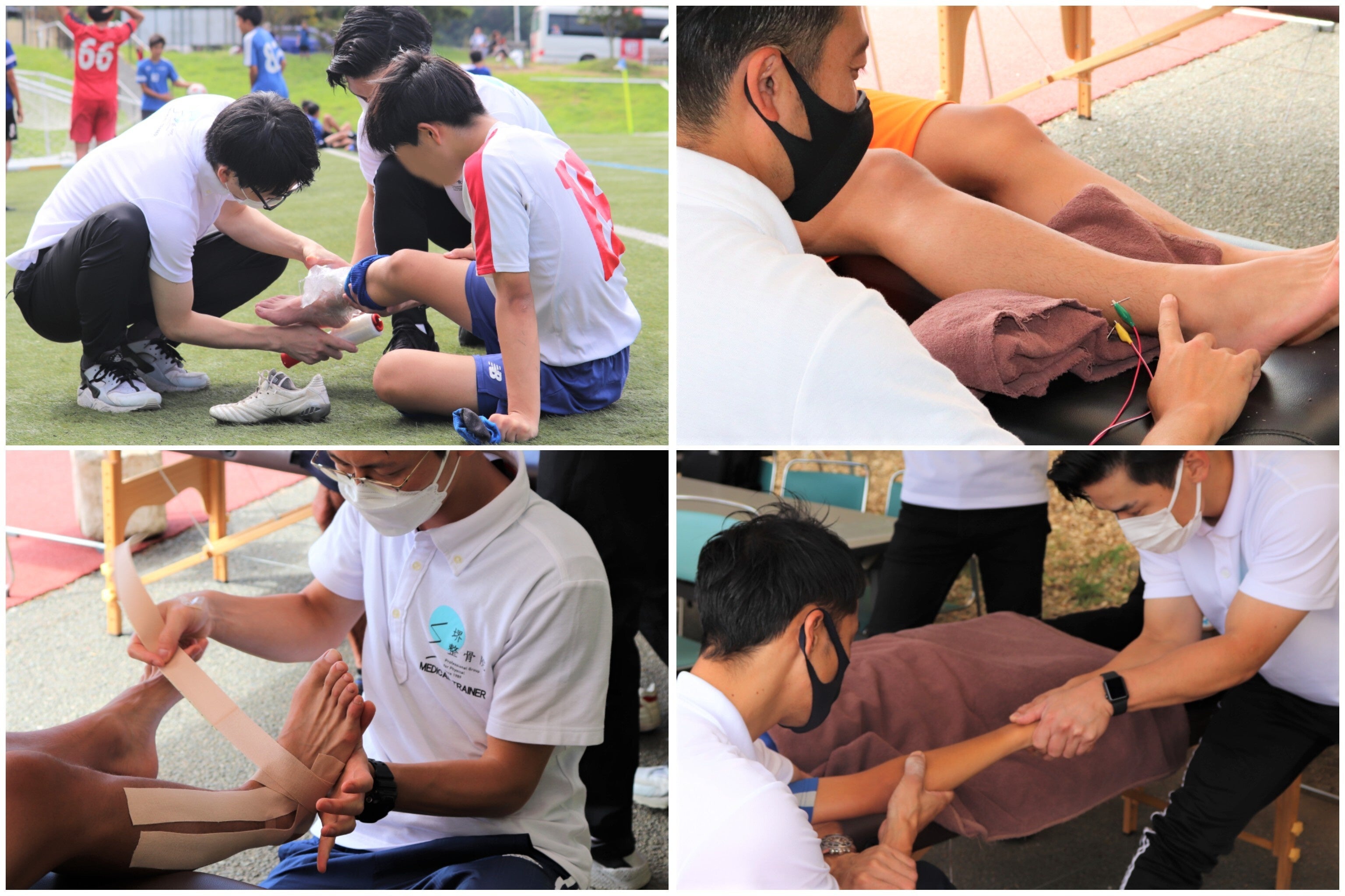 堺整骨院グループは、国家資格を保持した柔道整復師・鍼灸師が、地域のスポーツ大会に救護トレーナーとして積極的に参加し、選手のサポートを行います。