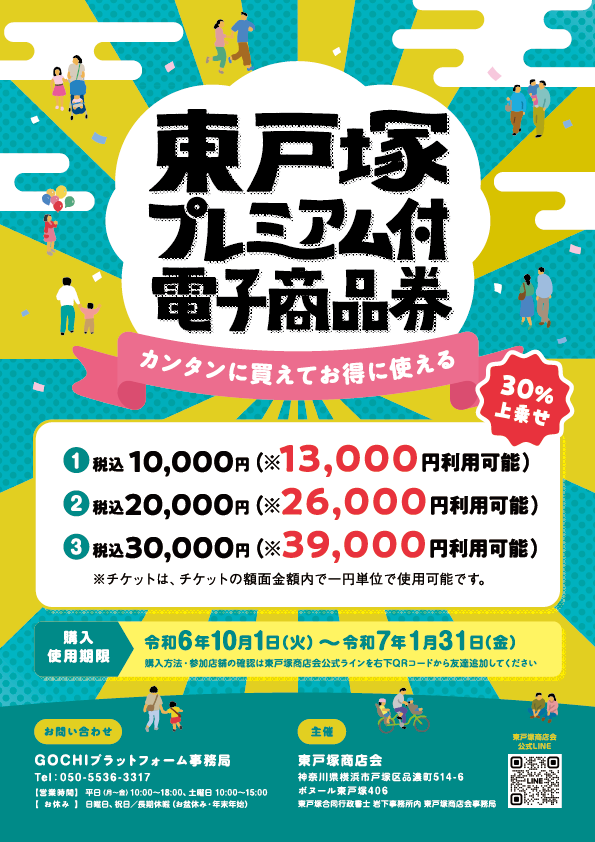 東戸塚商店会の22店舗でお得にお買い物が楽しめる「東戸塚プレミアム付電子商品券」10月1日より販売開始!