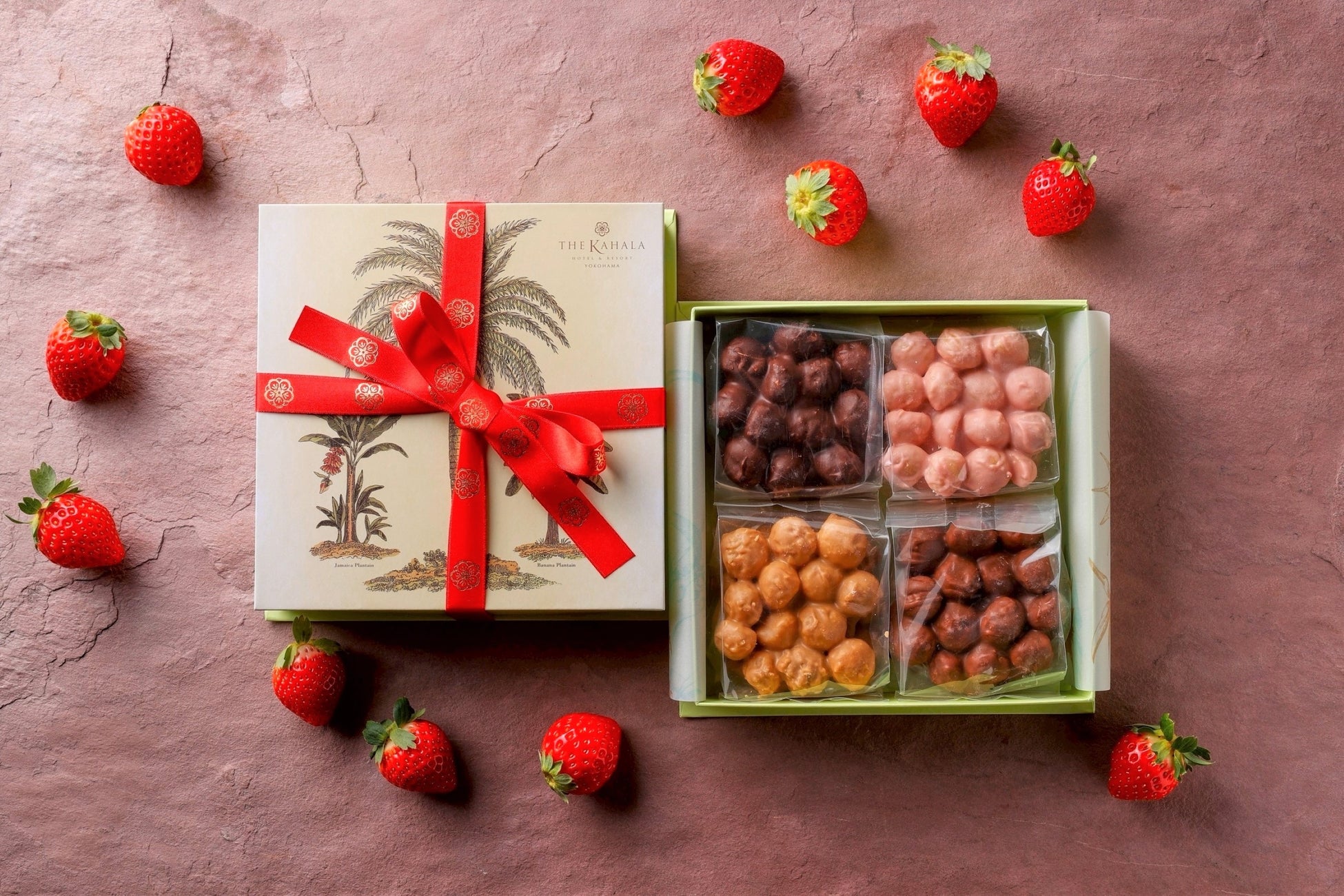 ハワイで半世紀以上愛され続けるザ・カハラ・ホテル&リゾート ホノルル・ハワイの名品を受け継ぎながら、横浜ならではの彩りを添えたマカダミアナッツチョコレート。大粒のマカダミアナッツにチョコレートを絡めた深みのある味わいはそのままに、今回の限定フレーバー「あまおう」では、パウダー状のあまおうをホワイトチョコレートに練り込み、甘酸っぱさと芳醇さを、ふんわりとした余韻に仕立てました。ミルキーなホワイトチョコレートに、あまおうのふくよか香りと果実味がほどけ、ナッツのコクを引き立てる、冬の季節にぴったりな味わいです。