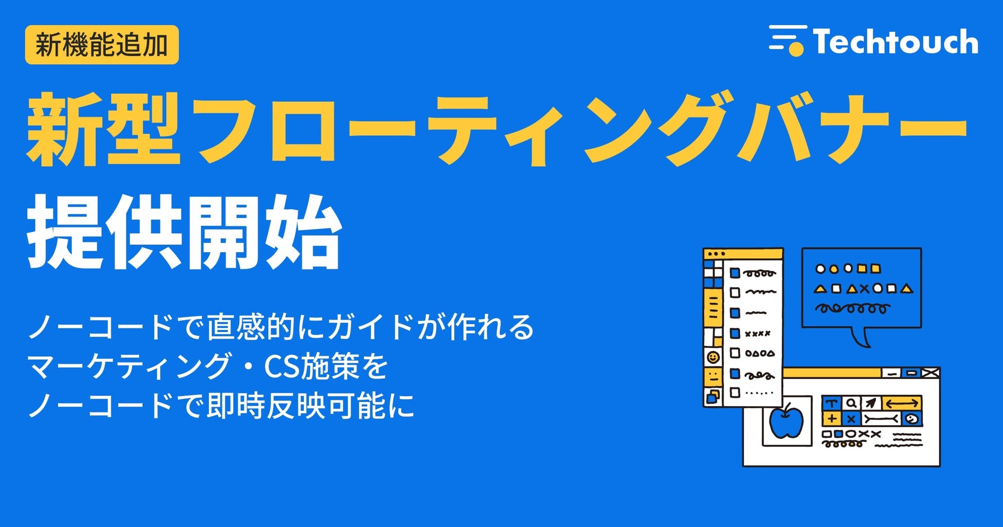 AI型次世代DAP「テックタッチ」を開発・提供し、DAP市場国内シェアNo.1のテックタッチ株式会社は、マーケティング・カスタマーサクセス部門の施策をさらに加速させる新機能「新型フローティングバナー」を提供開始しました。