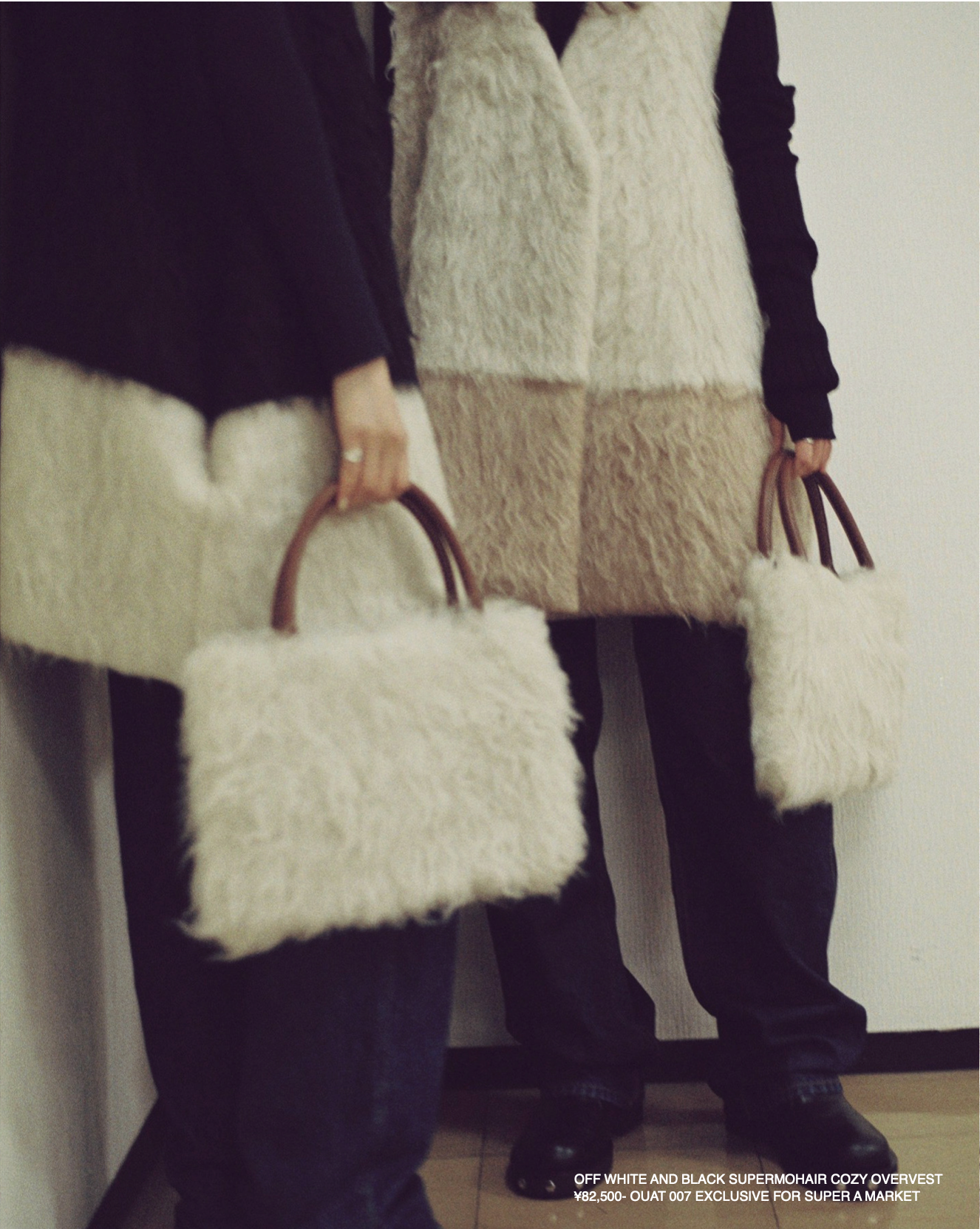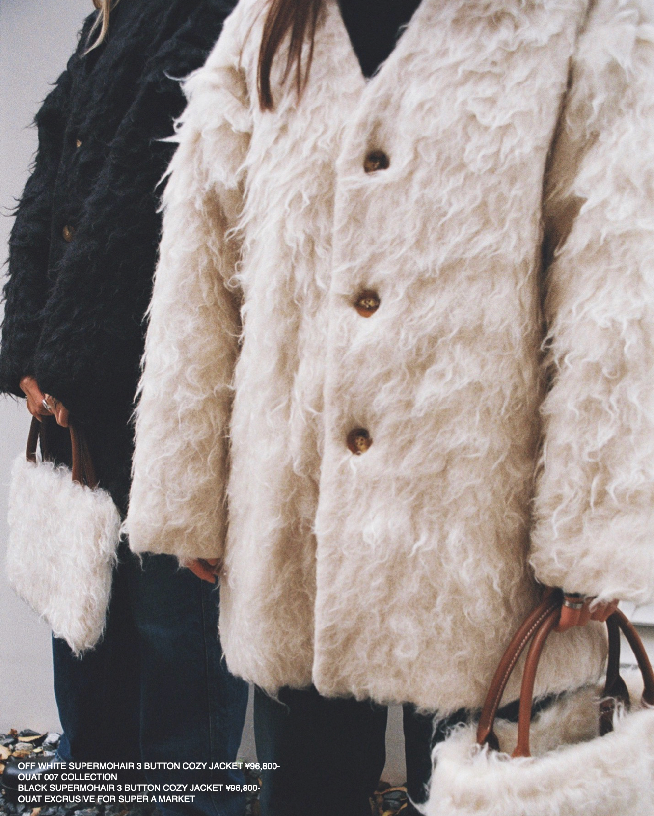 今回は超長毛足のスーパーモヘアを使用したオーバージャケット、ロングコート、オーバーベストの3型よりインラインでは通常展開のない限定カラーをOUAT直営店とあわせ、販売。
