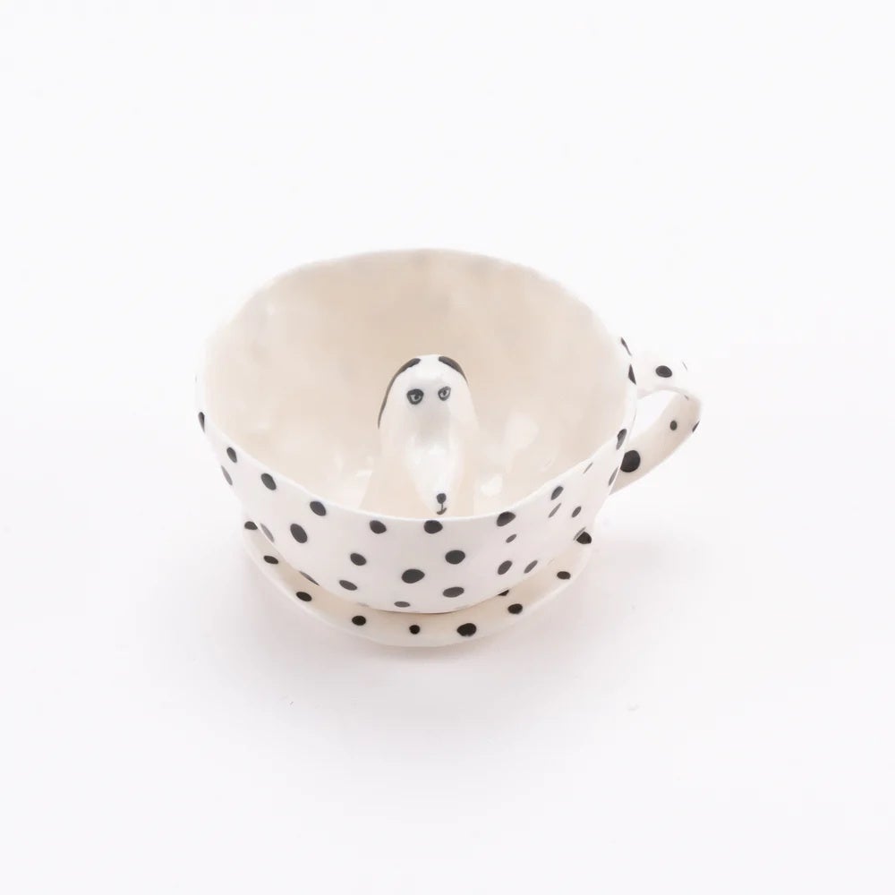 - 【新商品】しあわせのコーヒーカップ(黒みみ・ブラックドット)