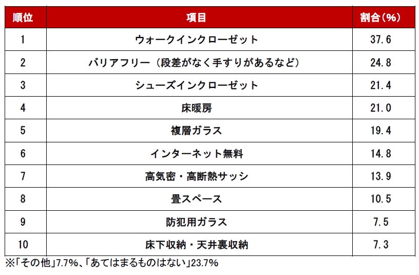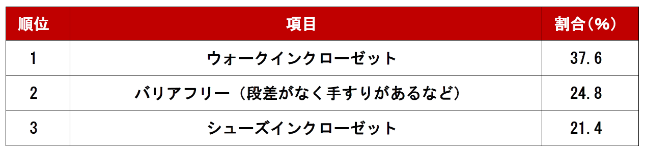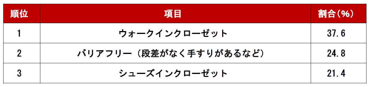 - ≪室内設備≫ 1位 「ウォークインクローゼット」 37.6%