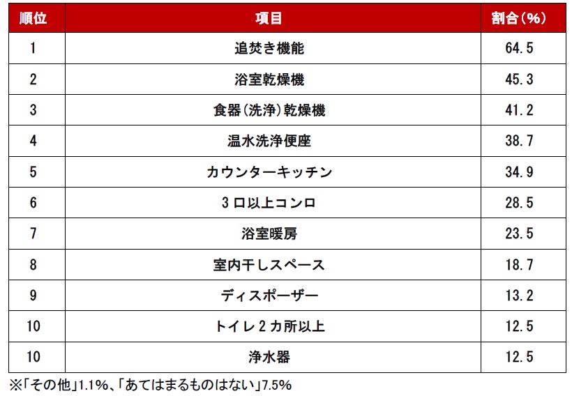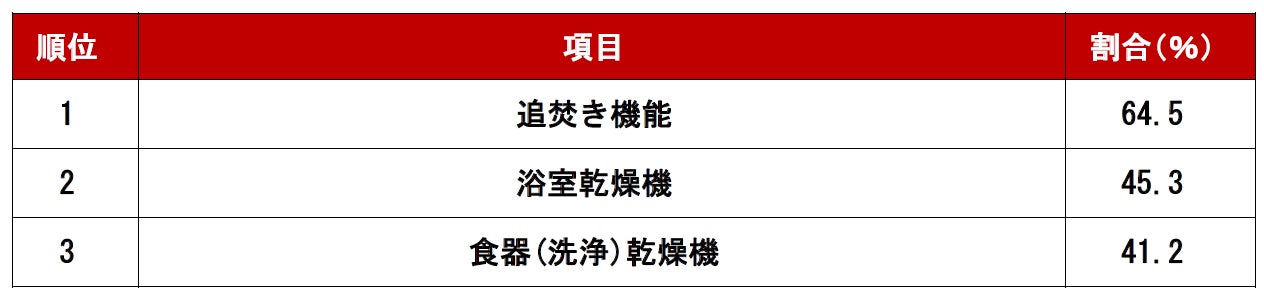 - <水回り(キッチン・トイレ・お風呂)設備>第1位 追焚き機能 64.5%