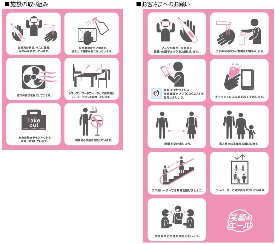 三井不動産グループが運営する商業施設では、新型コロナウイルス感染拡大防止のため、下記をはじめとした様々な取り組みを実施しております。