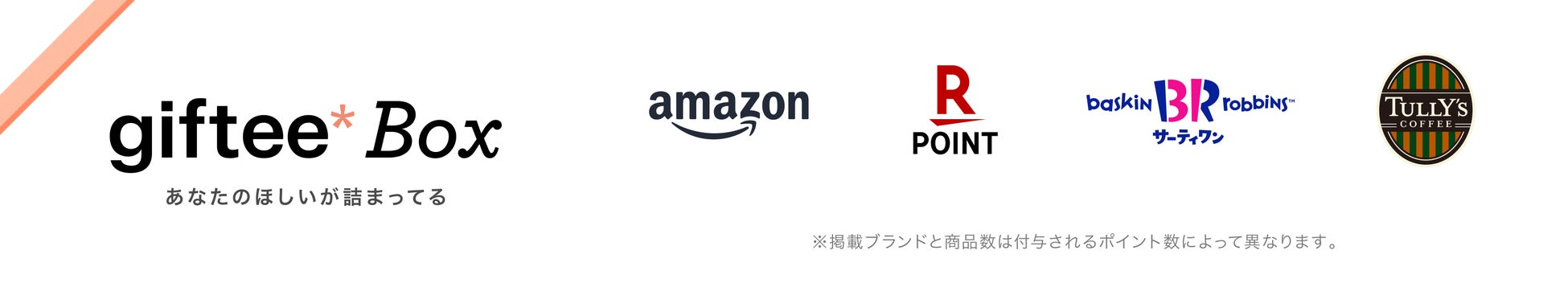 ※「giftee Box®」は、株式会社ギフティが提供するデジタルギフトであり、様々なラインナップの中から贈呈された「ギフトポイント」内でお好きな商品と交換することができます。「giftee Box®」および「ギフトポイント」の利用には会員登録やアプリダウンロードの必要もなく、保有ポイント内で複数の決済サービスポイントを選ぶことも可能です。