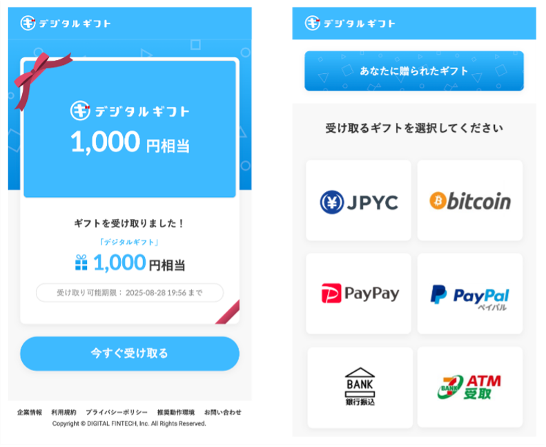 【国内初(※1)】デジタルギフト®に日本円ステーブルコイン「JPYC」が受取先として追加