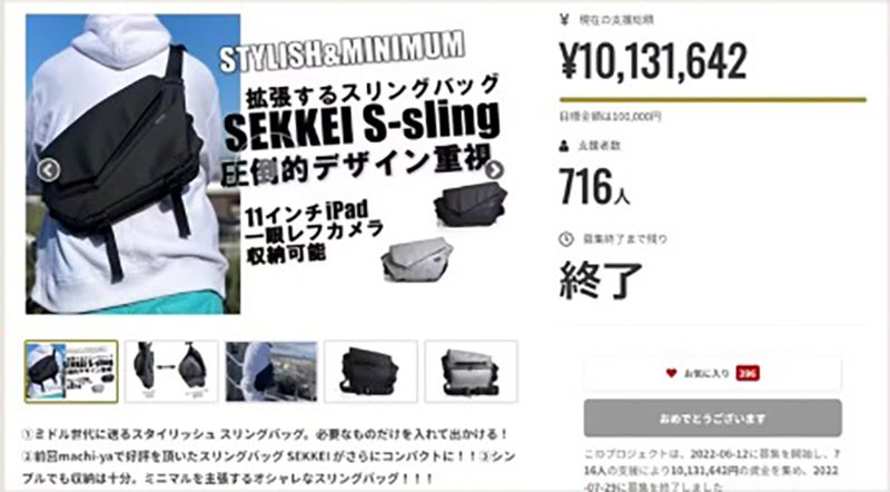 SEKKEIシリーズより新色登場!ノートPCも収納可能、拡張できるスリングバッグMX-slingが、クラウドファンディング「マチヤ」で販売スタート
