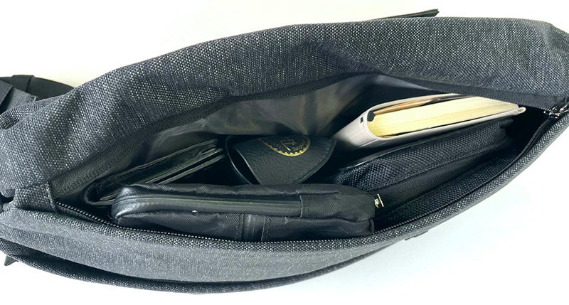 バッグ背面のセキュリティコンパートメントはファスナー付き。収納エリアの他に2つのポケットも付いています。