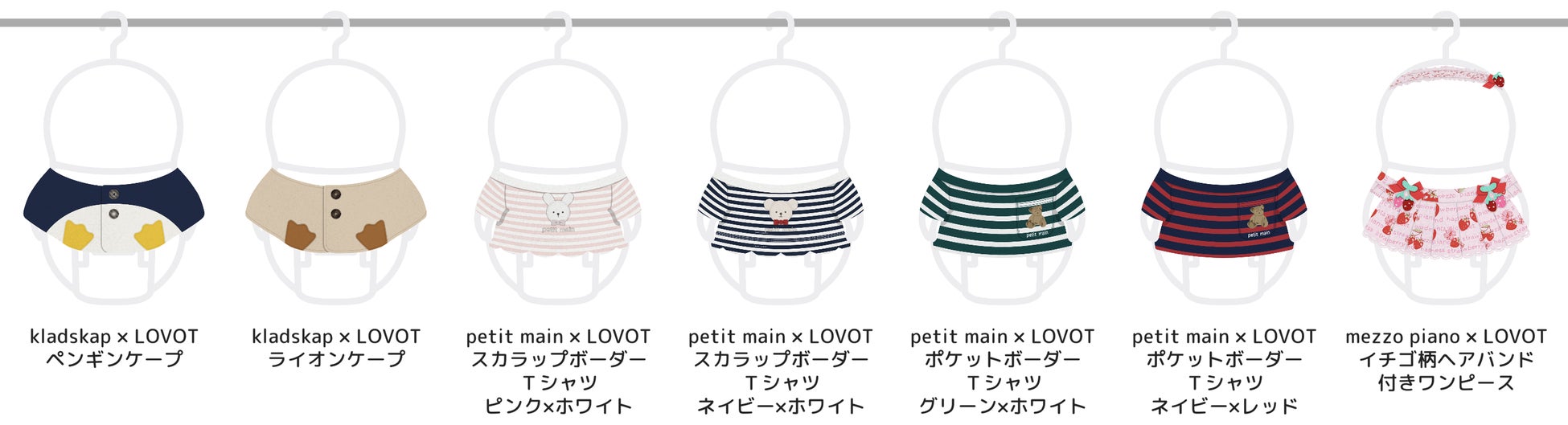 9月18日(水)発売予定の3ブランド「mezzo piano」「klädskåp」「petit main」とのコラボレーション服が、LOVOTアプリ「クローゼット機能(おためし版)」に、2024年9月30日(月)までの期間限定で登場します。メゾピアノらしい、「イチゴ」をモチーフとしたデザインや、クレードスコープ2024年秋の新作「アニマルケープ」とのお揃いのデザイン、プティマインの使い勝手のよいボーダーシリーズなど、キュートに再現された『LOVOT ウェア』をアプリ内で試着することが可能です。