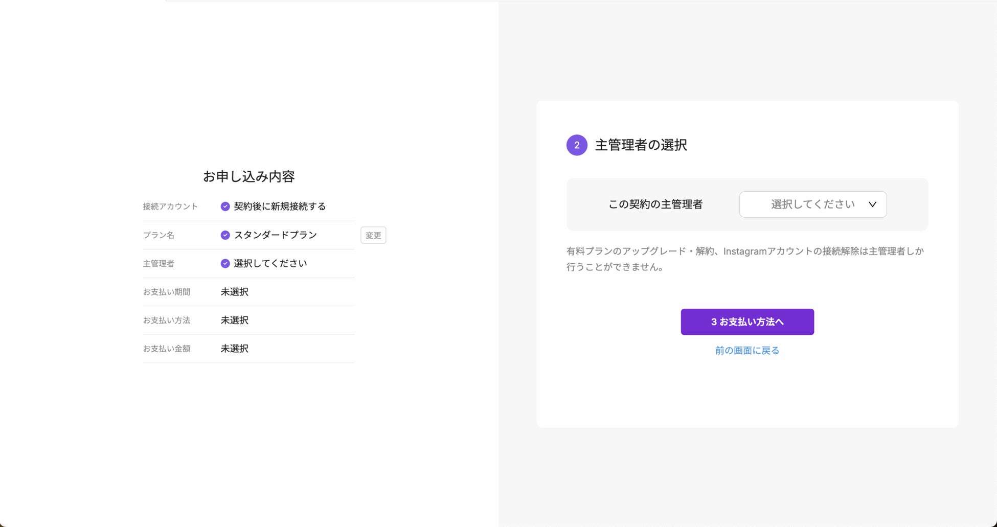 株式会社ミショナはInstagram(インスタ)自動化システム「エルグラム」のアップグレード決済画面のUIをリニューアル。3ステップの分かりやすいフローで手続きを簡素化し、初心者でも迷わず導入可能に。
