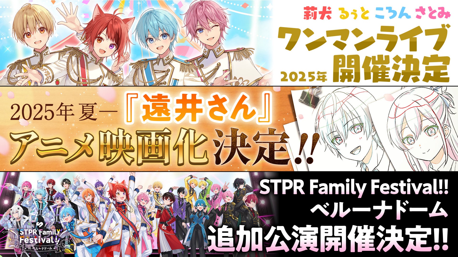 2025年4月4日(金)~6日(日)の3日間にわたって行われる『STPR Family Festival!! in ベルーナドーム』の開催が決定。2025年4月2日(水)~3日(木)開催の東京ドーム公演を合わせて全5日間・20万人を動員する、STPR史上最大級のドームフェスとなります。