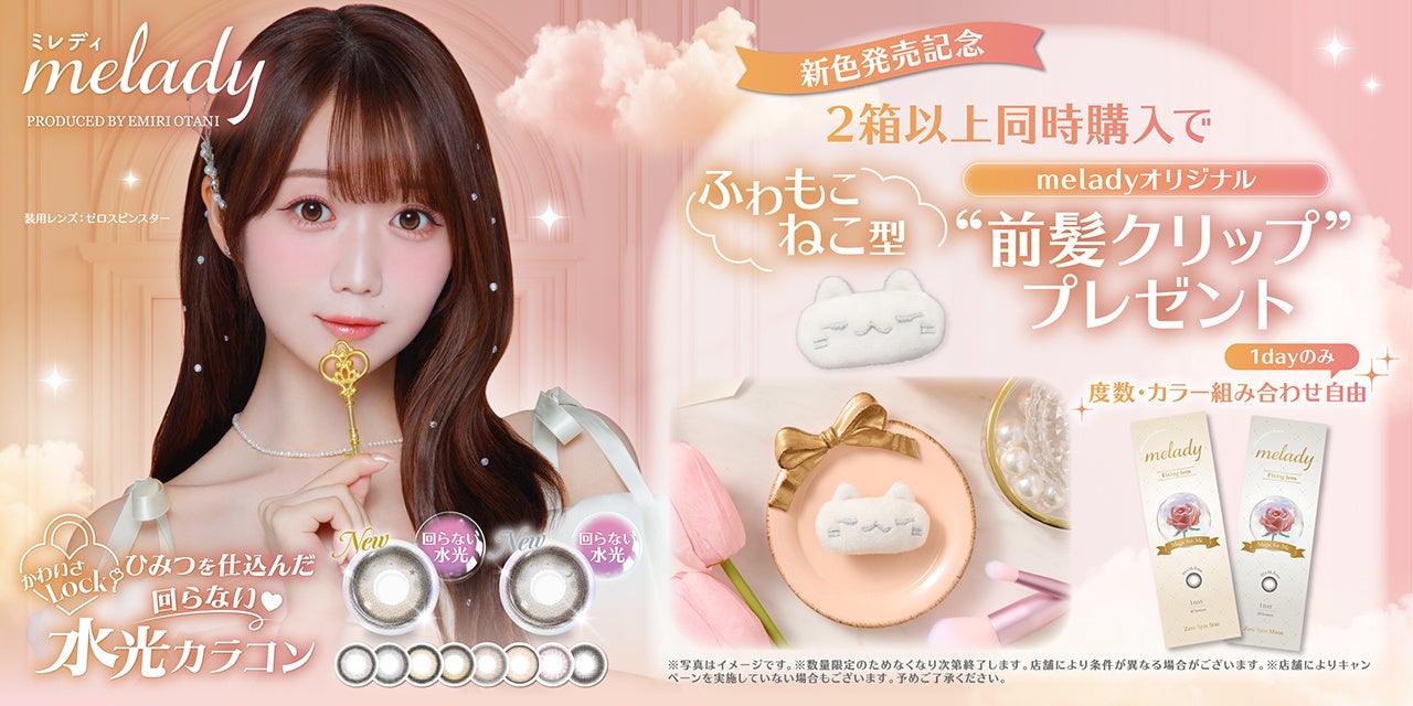 PIA株式会社(本社:東京都品川区 代表取締役:見原 博道)は、今大注目の人気アイドルグループ「=LOVE」のメンバーであり、モデルやアパレルブランドのプロデューサーとしても多岐にわたり活動中である大谷映美里さんプロデュースのカラーコンタクトレンズブランド『melady(ミレディ)』より、新色2色を2026年5月8日(金)に発売いたします。