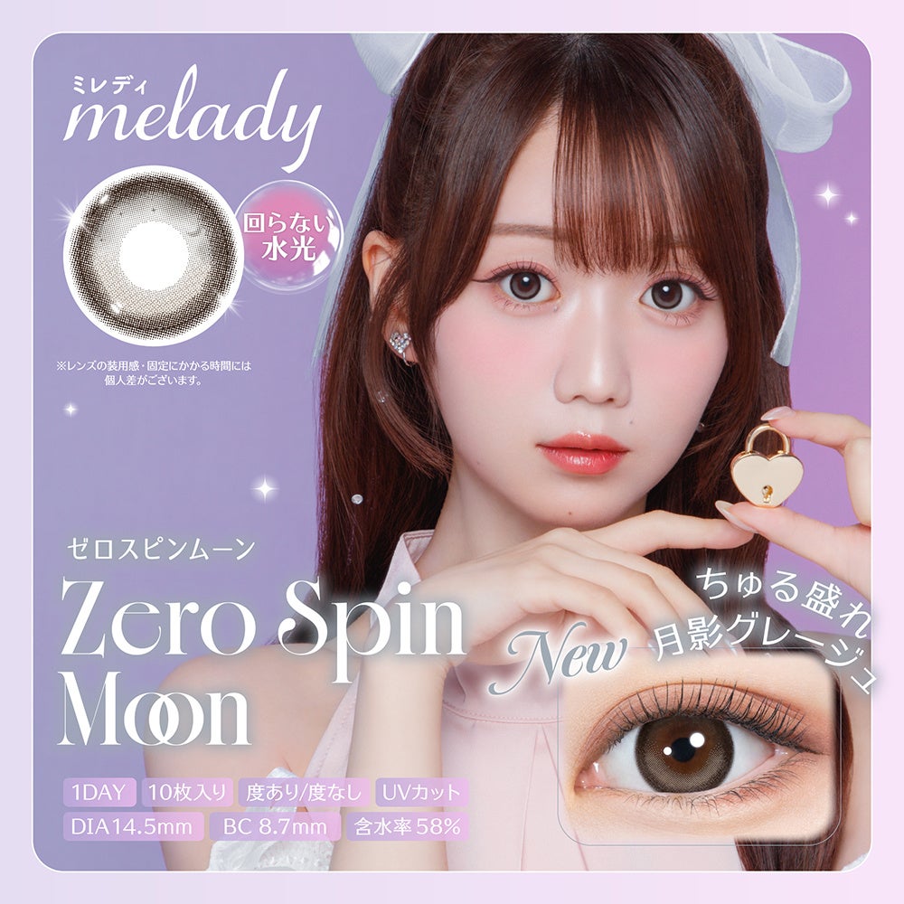 今回の新商品は、レンズが瞳の上でくるくる回らず、常に理想の角度をキープする「Zero Spin(ゼロスピン)シリーズ」です。特殊設計技術により、いつだっていちばん可愛い角度のまま“水光感”をキープします。