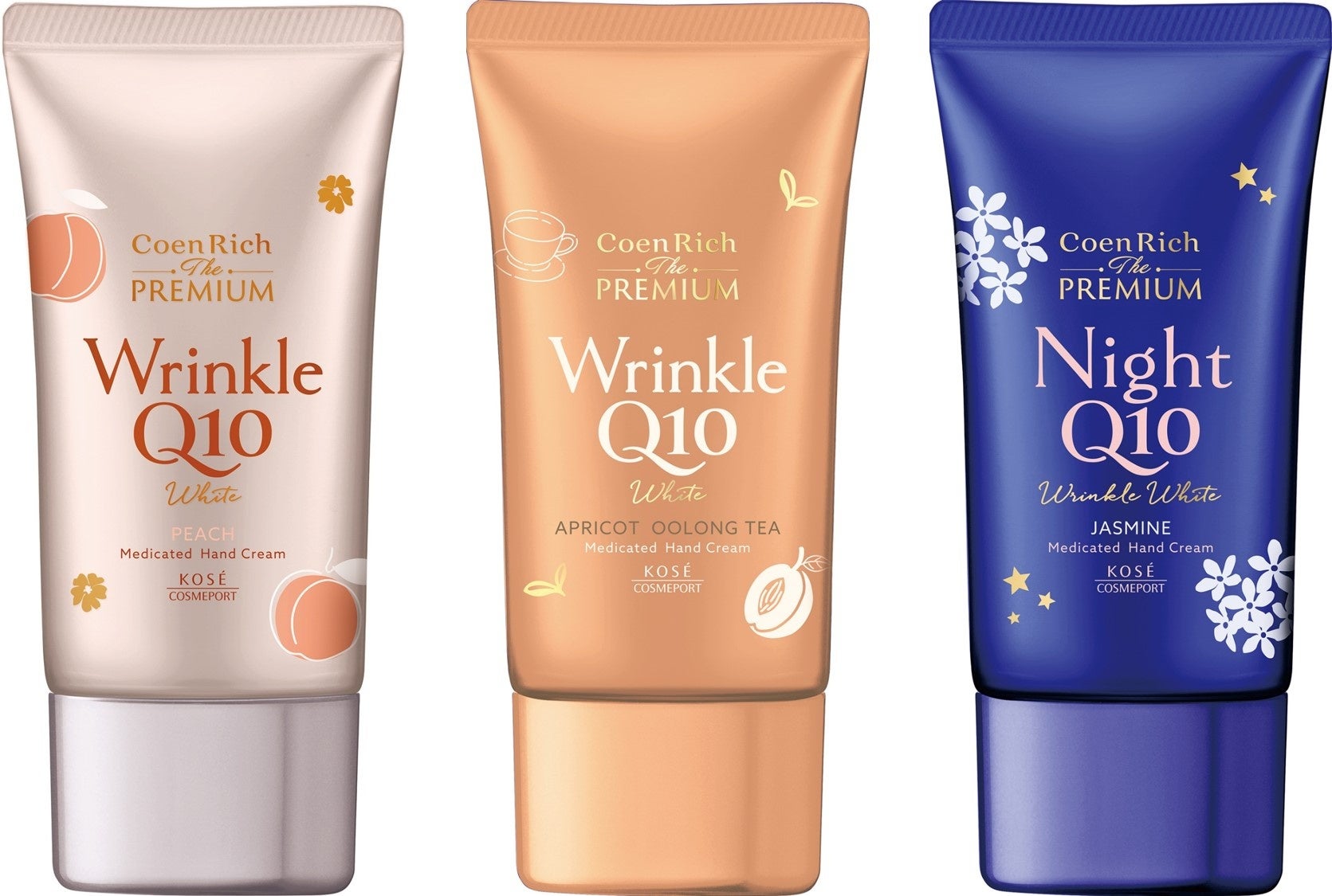 コーセーコスメポート株式会社(本社:東京都中央区、代表取締役社長:小林 孝雄)は、高機能ハンドケアシリーズ『コエンリッチ ザ プレミアム』より、「薬用リンクルホワイト ハンドクリーム 蜜桃の香り」、「薬用リンクルホワイト ハンドクリーム アプリコットウーロンティの香り」と「薬用リンクルナイト ハンドクリーム ジャスミンドリームの香り」(3品目3品種、ノープリントプライス)を2025年8月1日より全国の量販店・ドラッグストアを中心に数量限定で発売します。