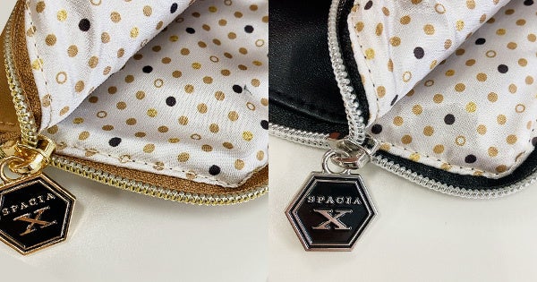 車内限定のオリジナル商品。L字ファスナーで取り出しやすく、カードやコイン等の収納に便利です。内側の生地はカフェスタッフのスカーフ柄の一部を採用。 SPACIA X六角形のチャームがついているので、ご乗車記念におすすめです。