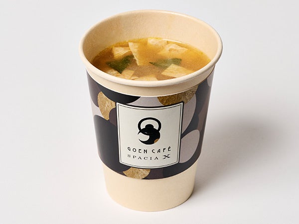 希少な日光の大豆とお米を使った日光味噌を贅沢に使用しています。揚げ湯波と国産ほうれん草入り。素材の味が活きた究極のお味噌汁です。