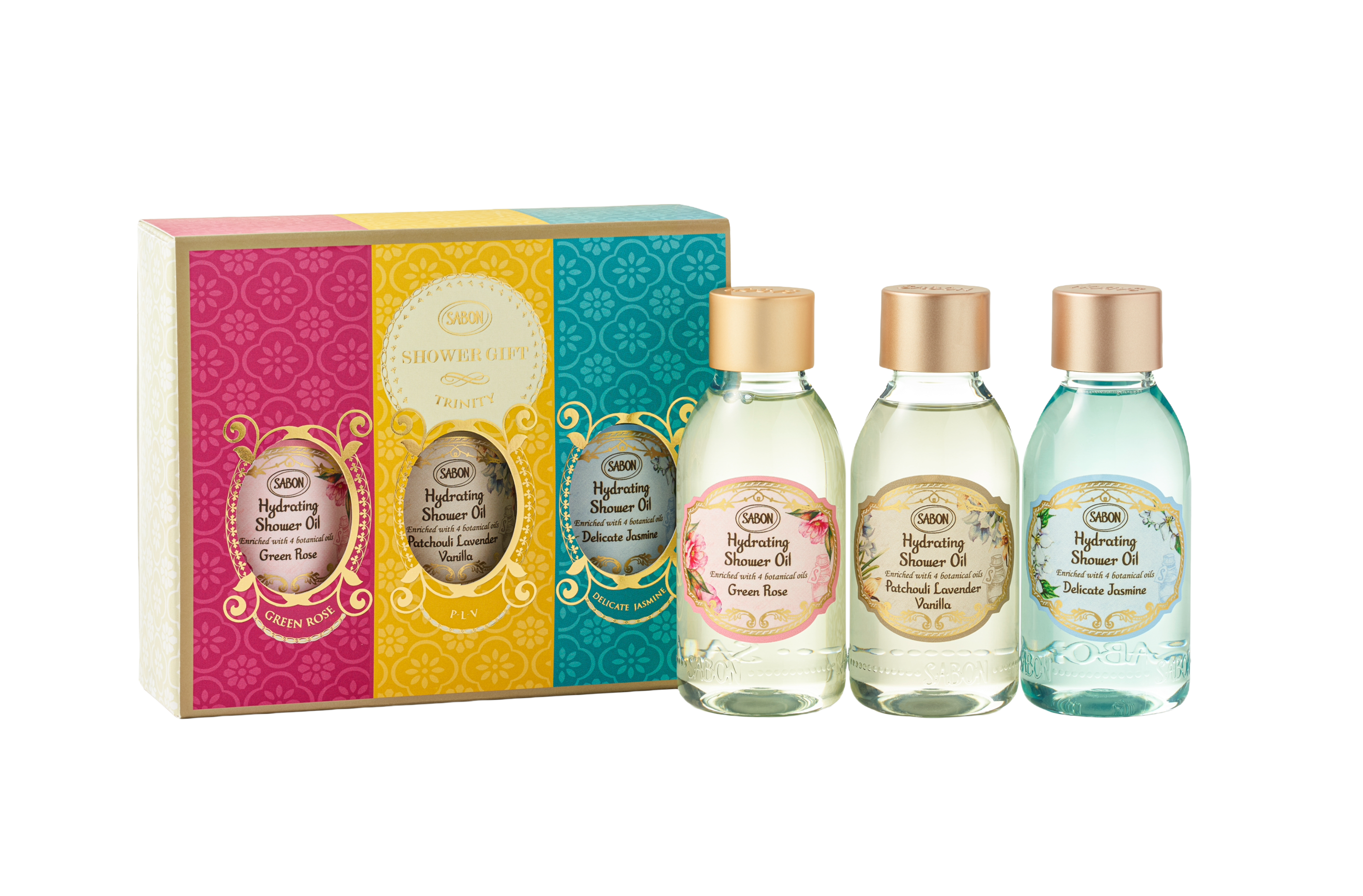 内容 ハイドレイティング シャワーオイル 100mL(3種の香り:デリケート・ジャスミン、グリーン・ローズ、パチュリ・ラベンダー・バニラ)