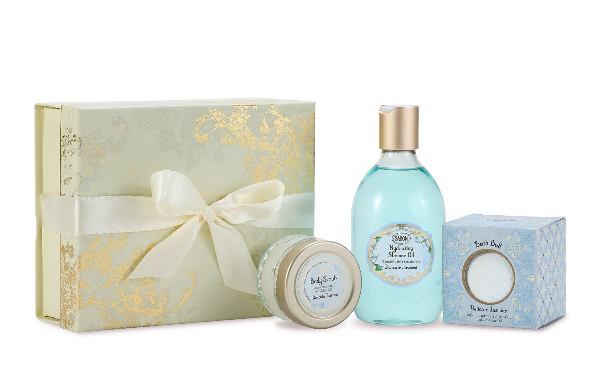 内容 ハイドレイティング シャワーオイル 300mL、ボディスクラブ 60g、バスボール、ギフトボックス
