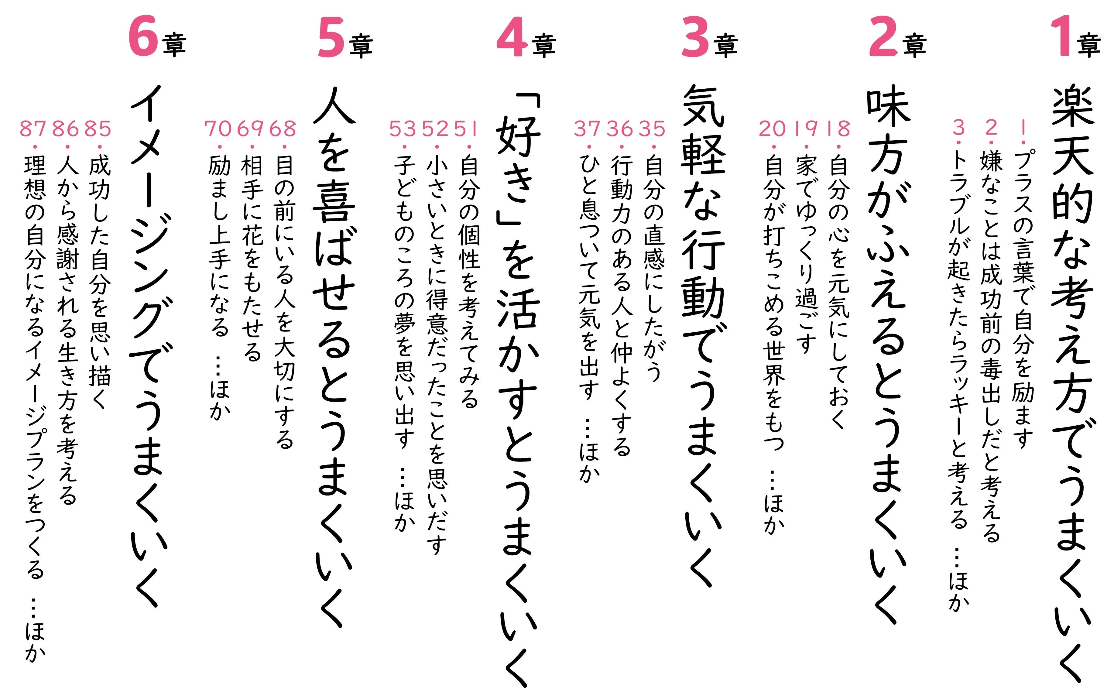 自分の魅力を高める方法、まわりを味方につけるテクニック、心のあり方を磨くための習慣、そして、強運を身につけるコツなど。できるところから実践してみたくなる、100項目を収録。