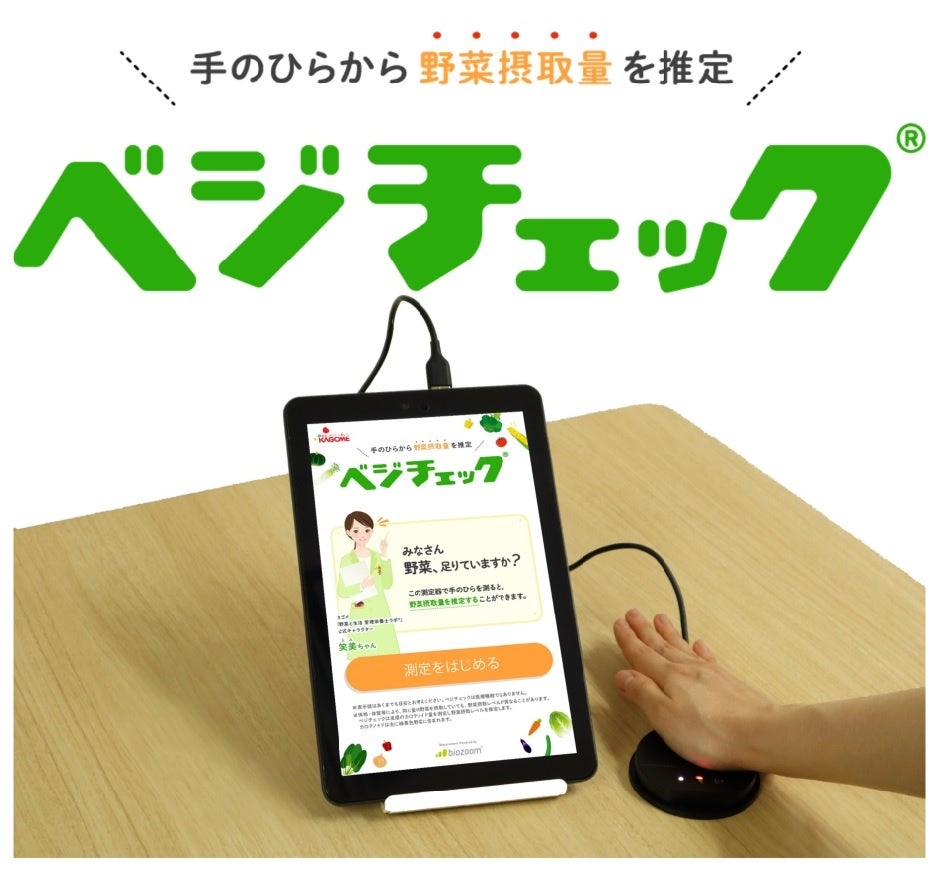 約30秒で簡単に野菜摂取レベル、推定野菜摂取量を表示して、食習慣改善の行動変容をサポートします。