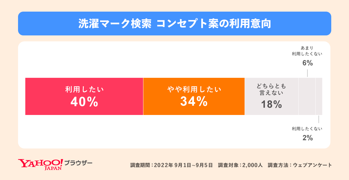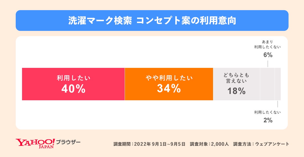 このたび、汗を吸収した衣類や寝具、プールで使った水着、キャンプで使ったアウトドアアイテムなど、日常生活や行楽でも洗濯物が増える夏の季節に合わせて本機能の提供を開始します。洗濯マーク(洗濯表示)は2016年にデザインが一新(※2)されたことで、日本独自の旧表示と国際規格(ISO)に準じた新表示が存在しており、複雑で分かりづらいといった声も上がっています。実際に、Yahoo! JAPANが実施した洗濯マークに関するアンケート(※3)でも、意味の分からない洗濯表示があると回答した人は約98%(※4)、洗濯機で洗ってはいけないもの(色落ちするもの、撥水加工のものなど)を洗ってしまったことがあると回答した人は約66%で、別のアンケート(※5)では約74%の回答者が本機能への利用意向を示すなど、洗濯のお悩み解決につながる機能のニーズの高さもうかがえます。