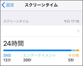 このバグでは、実際の使用に関わらず、スクリーンタイムのアプリの利用時間が24時間になってしまいます。