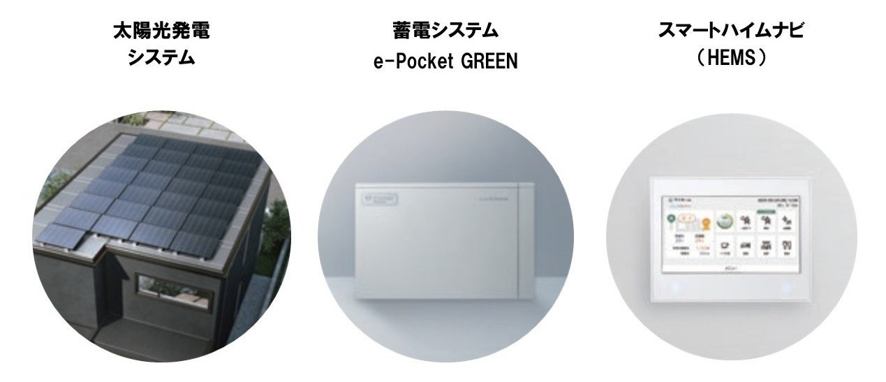 *販売価格には、建物本体材料費・工事費、並びに太陽光発電システム4.93kW(パネル・パワーコンディショナー含む)、蓄電池4.9kWh、HEMS、快適エアリーT-SAS(1階)、エコキュートの価格が含まれます。2階エアコン、旧家屋解体工事、屋外給排水工事、屋外電気工事、外構造園工事等の費用は別途となります。地域により価格が異なります。