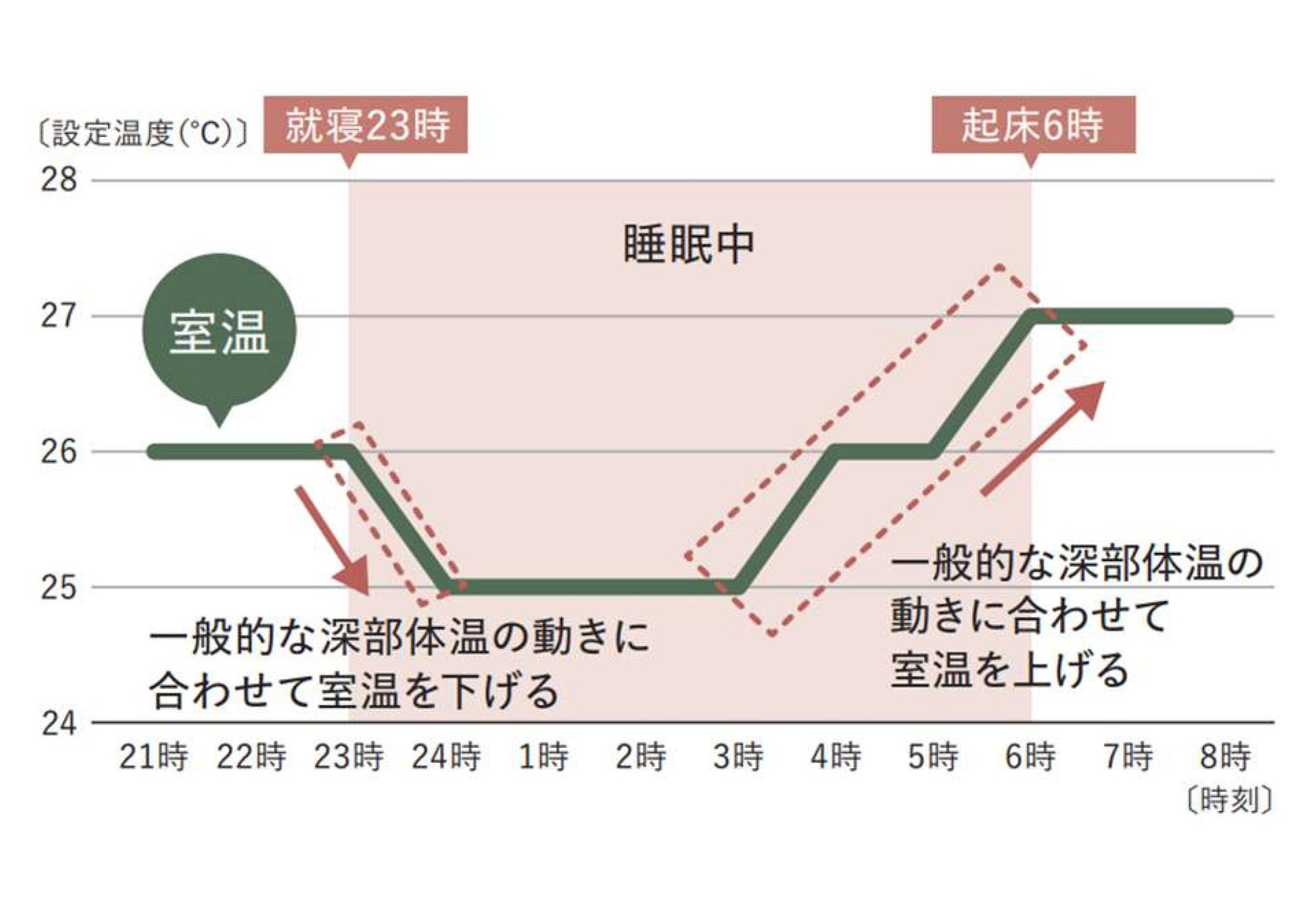 ※9:本製品は室温を管理するシステムであり、居住者の深部体温に働きかけるものではありません。 この製品は自動的に眠りや体温を検知して室温を調整するわけではありません。室温が変化する時間は、お客様にて設定・変更いただきます。外気条件により設定温度にならないことがあります。春や秋の中間期は暑さ寒さが発生する可能性があります。その場合は空調をOFFにするか設定温度を変更してください。
