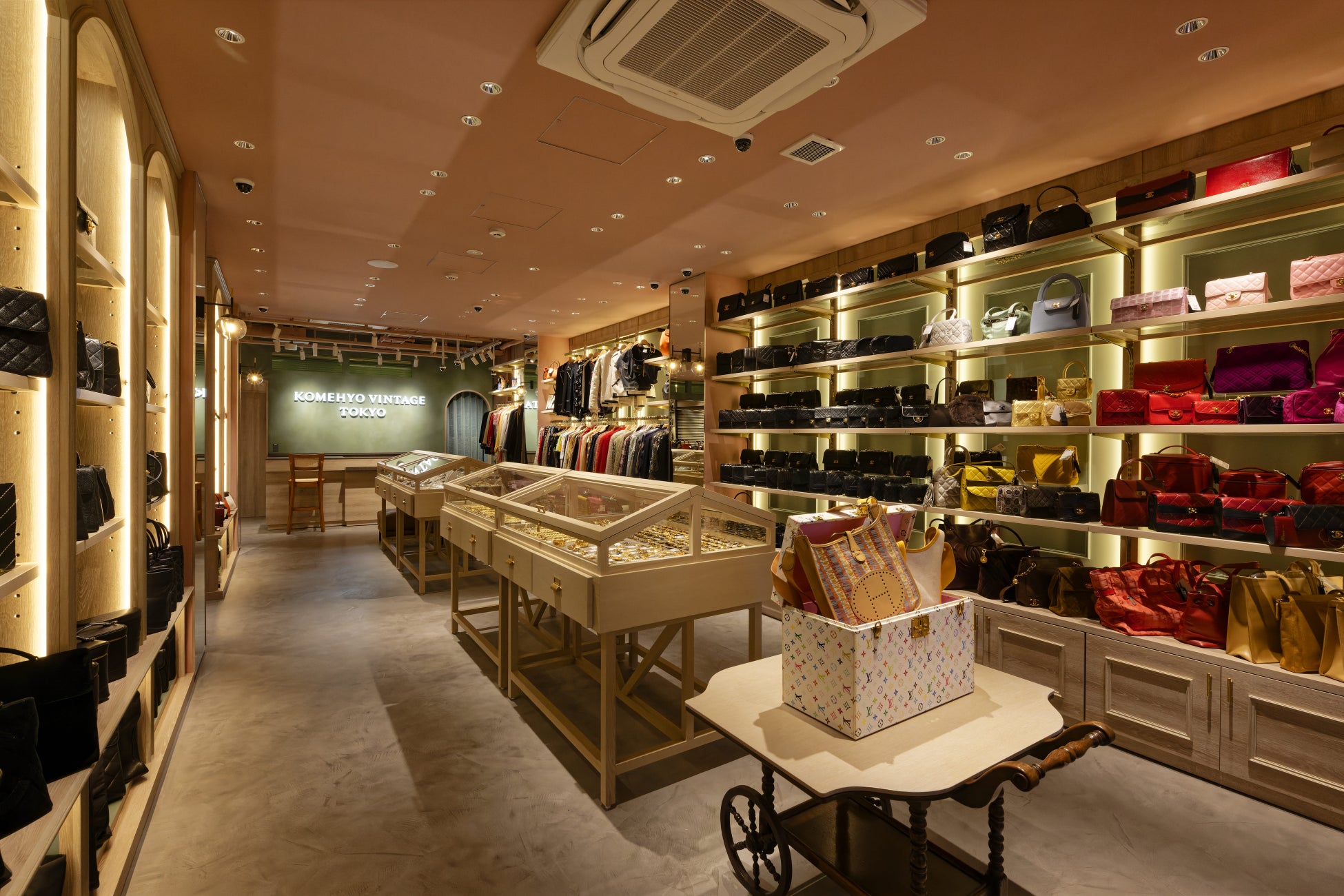 KOMEHYO VINTAGE TOKYOは、2024年11月30日(土)のオープンから2025年2月28日(金)までの3か月で、累計で約20,000人のお客様にお越しいただき、売上高は計画比の150%を達成するなど、順調に成長を続けています。特に、ヴィンテージのブランドバッグが売上の約9割を占め、中でもシャネルのチェーンバッグやエルメスのケリーなどの高価格帯のアイテムが人気です。