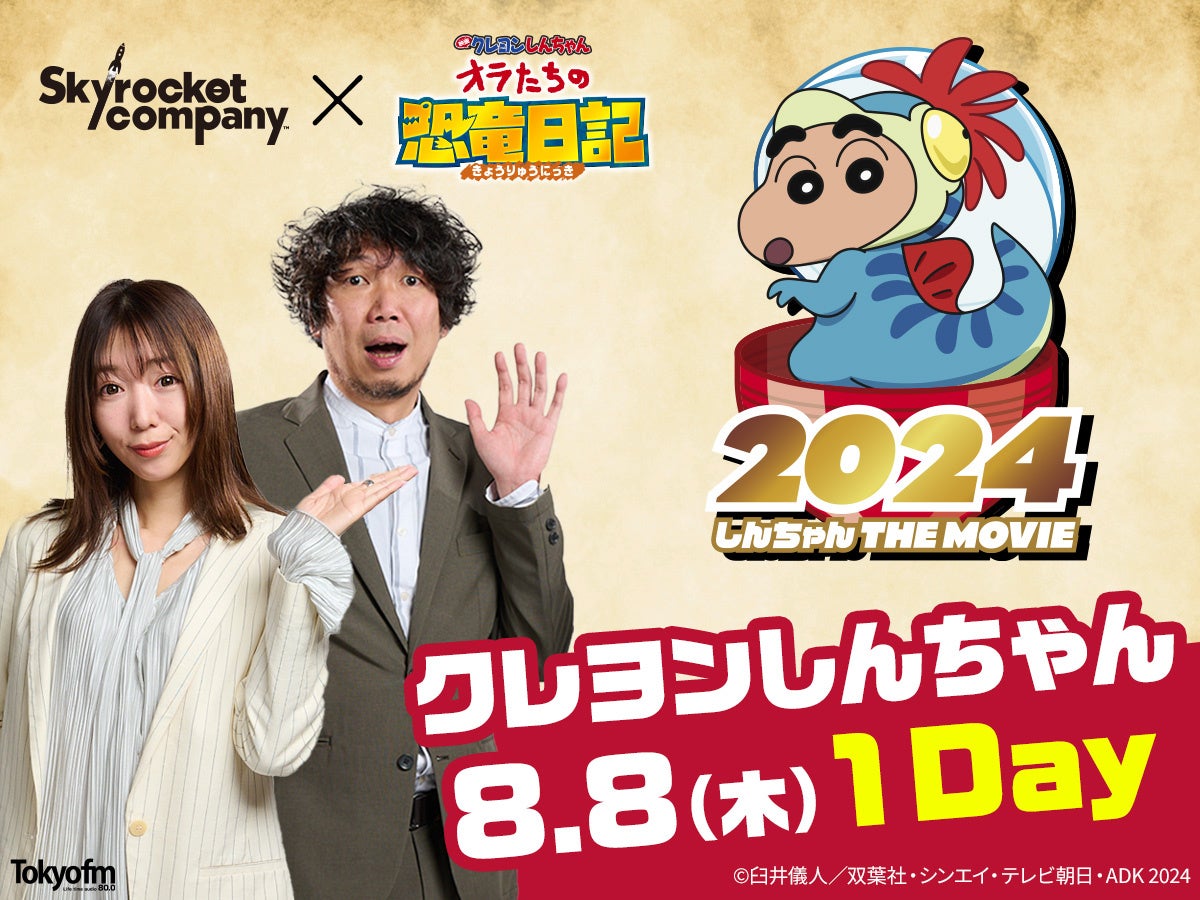 また、TOKYO FMの人気番組「Skyrocket Company」において、昨年好評だったクレヨンしんちゃんコラボの第二弾が決定。コラボ企画のコーナーでは、番組パーソナリティーとしんちゃんとの軽妙な掛け合いやスポンサー各社のオリジナルCMで映画公開を盛り上げます。