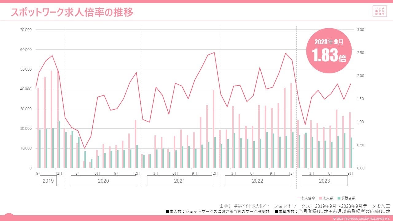 単発バイト求人サイト「ショットワークス」2019年9月~2023年9月データ