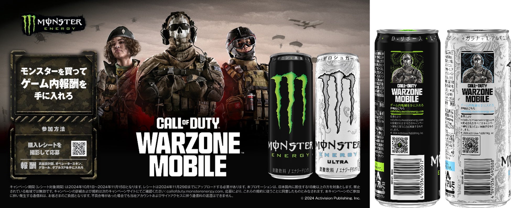 モンスターエナジーは、2024年10月1日(火)~ 11月15日(金)の期間中、『コール オブ デューティ®』の限定のインゲームアイテムが必ずもらえる「モンスターを買ってゲーム内報酬を手に入れろ」キャンペーンを開催いたします。