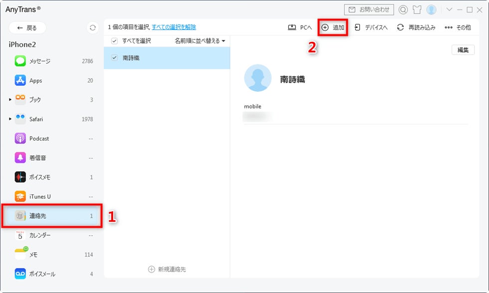 AnyTransでパソコンからiPadに連絡先をインポートする