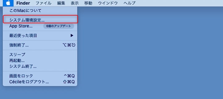 step1.メニューバーから「Apple メニュー」をクリックし、「システム環境設定」を選択します。