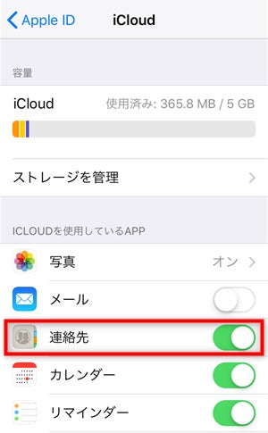 Step4.画面に表示されたアプリの一覧から、「連絡先」を選択します。