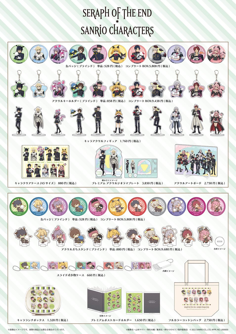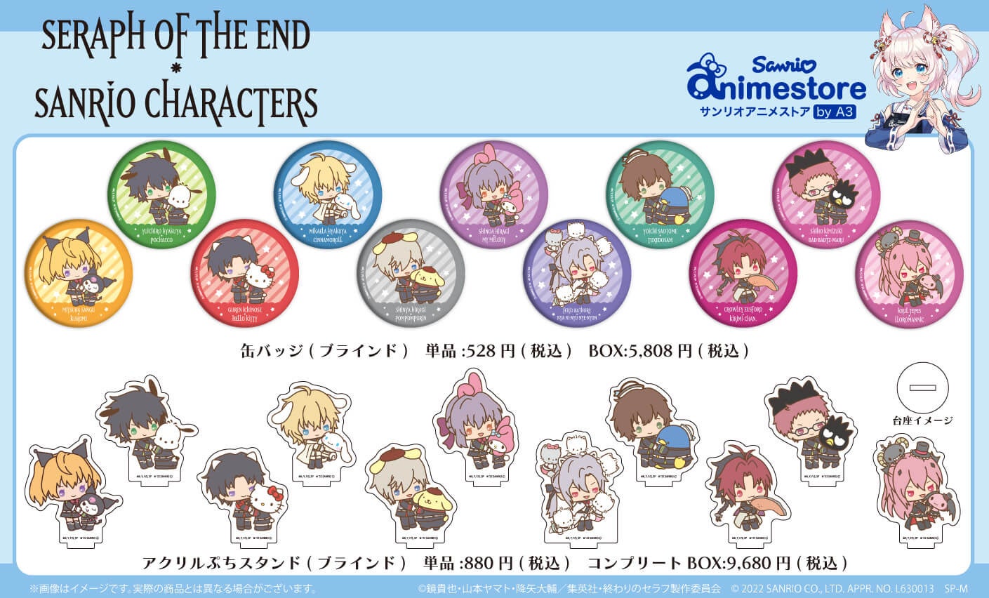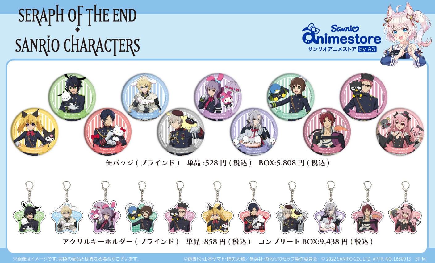 株式会社A3は、TVアニメ『終わりのセラフ』とサンリオキャラクターズのコラボグッズの販売を開始いたしました。