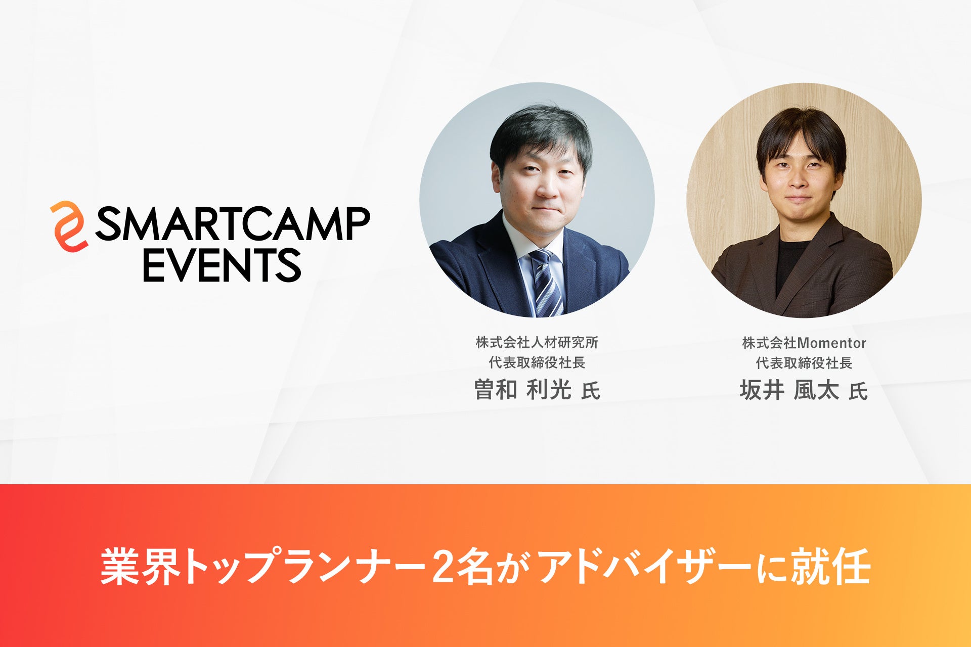 スマートキャンプ株式会社(本社:東京都港区、代表取締役社長CEO:林 詩音、以下「スマートキャンプ」)は、「BOXIL EXPO(ボクシル エキスポ)人事・総務展」「HR FUTURE CONFERENCE(HR フューチャー カンファレンス)」などスマートキャンプが主催する人事部門向けイベントのアドバイザーとして、株式会社人材研究所 代表取締役社長 曽和 利光氏、株式会社Momentor 代表取締役社長 坂井 風太氏の2名が2月1日付で就任したことをお知らせします。 業界を変革してきたトップランナーの知見を取り入れ、コンテンツの質向上を図るとともに、人事・経営層の意思決定を支援するプラットフォームとしての価値最大化を目指します。