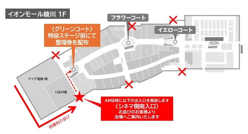 ※会場オープン前の8時からお並びいただけます(整理券の配布は待機列の状況を見ながら順次配布となります)。当日は多くのお客さまのご来店が予想されるため、イベント参加者優先入口を設ける予定です。