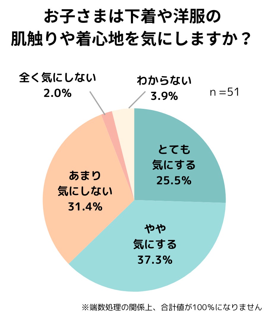 ・肌トラブルの有無にかかわらず、62.8%が「子どもは下着や洋服の肌触りや着心地をとても気にする/やや気にする」と回答