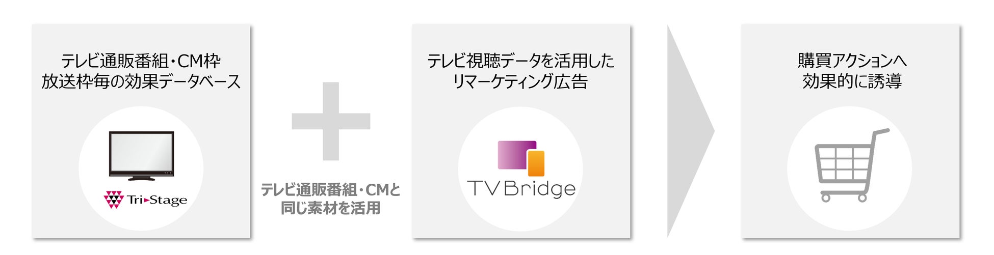 一方トライステージは、同社が提供するテレビ通販支援サービスの効果改善に取り組んでいます。トライステージは、テレビインフォマーシャルを見て商品に興味を持った視聴者層へのアプローチに課題を持っていました。そこで、当該視聴者層へのアプローチとして、テレビとデジタルを連携させた広告施策に強みを持つ「TVBridge」を活用したリマーケティングが採用されました。